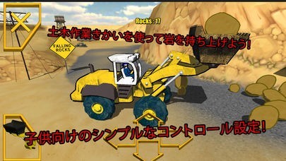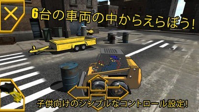 パワーショベルやブルドーザーなど、見かけた子どもが顔を輝かせる「はたらく車」を、カンタンな操作を通じ、スマホの中で実際に動かしてみるシミュレーションができます。
