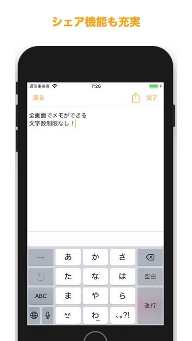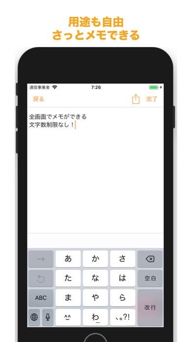 App Storeより引用使いやすい定番の無料メモ帳アプリです。