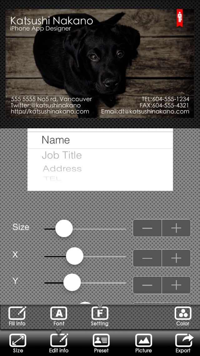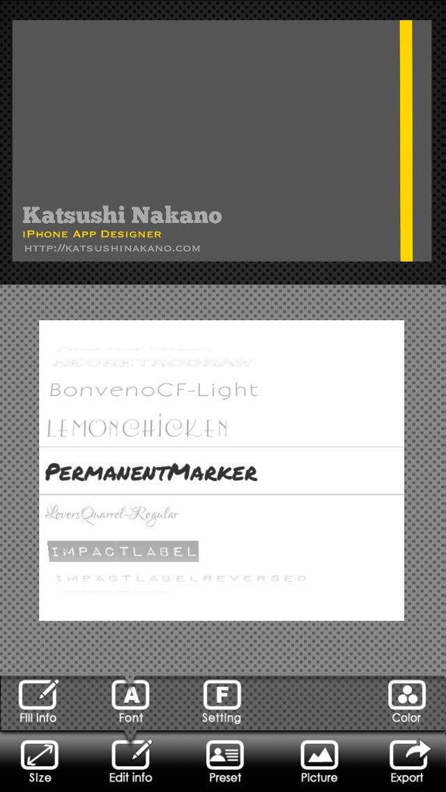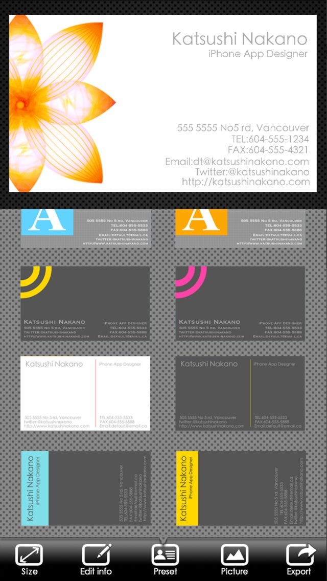 BusinessCardDesigner - 名刺作成ソフト、テンプレート with PDF, AirPrint and email functionのスクリーンショット