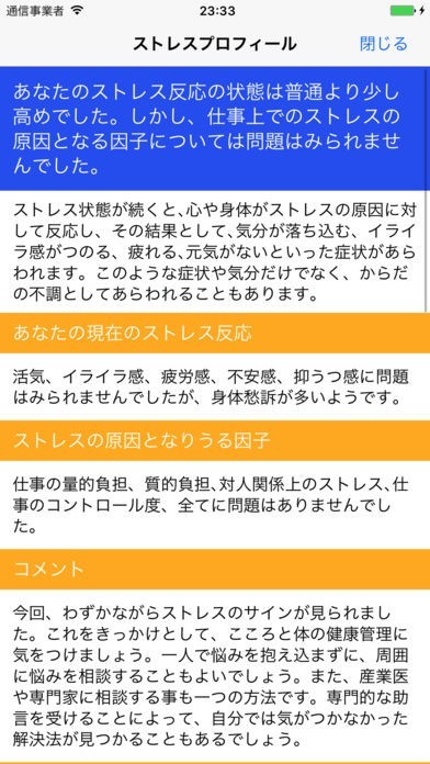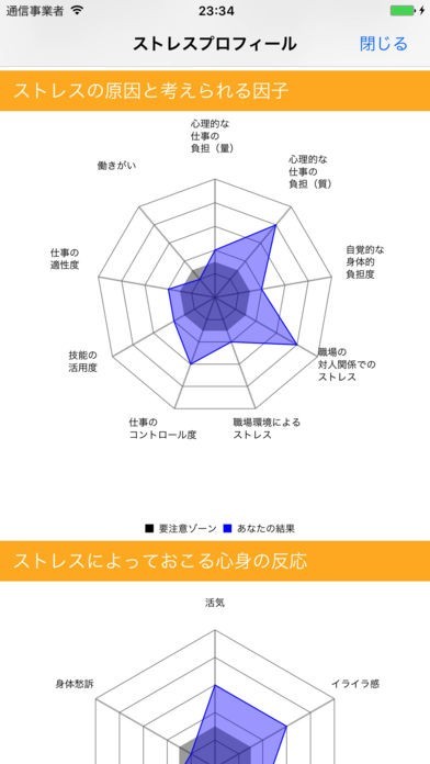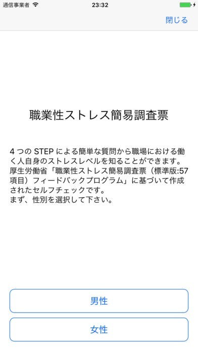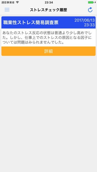 このアプリでは、国が推奨するストレスチェック「職業性ストレス簡易調査票(57項目) 」に対応し、事前にセルフチェックができます。
