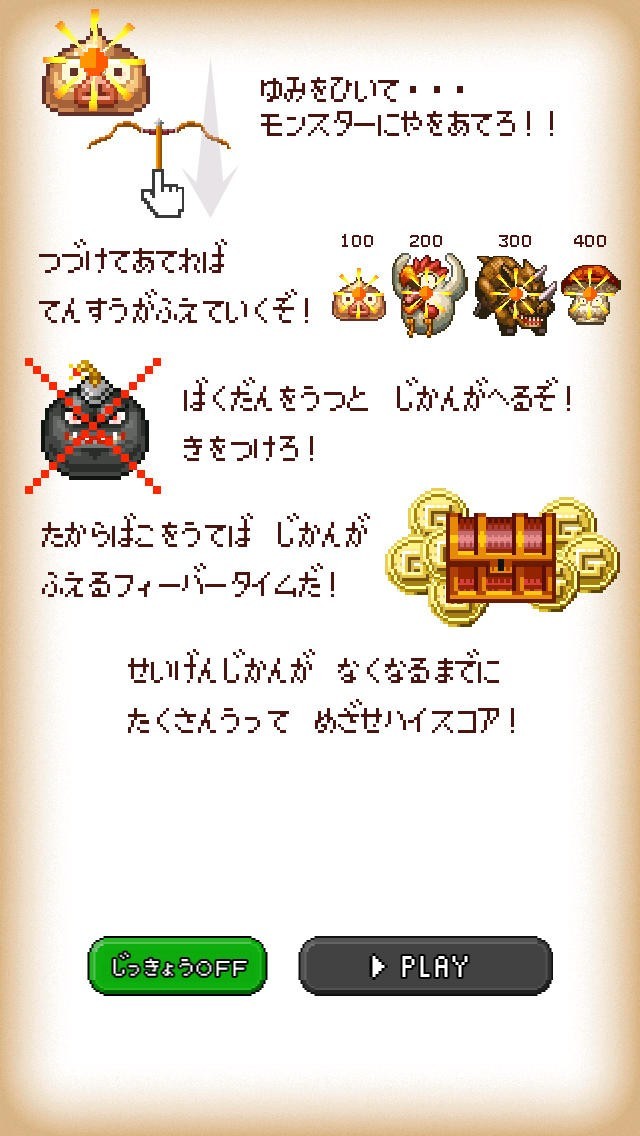 襲いくるモンスターを、弓矢でズバズバうちまくろう!