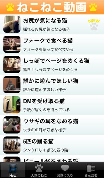 App Storeより引用「ねこねこ動画」は、猫の動画が盛りだくさんのネコ専門動画のビューワーアプリです。