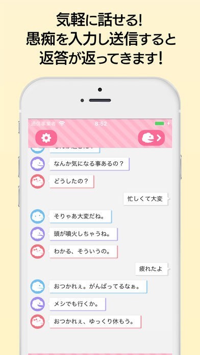 誰にも言えないことを溜め込まずにどんどん話してストレス発散できるアプリです。どんなに複雑な内容にでも必ず返答してくれて、全てを気兼ねなく発散することで気分もスッキリします。