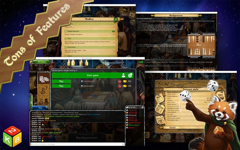 All board game fans will appreciate the easy to use interface, detailed visuals and many features. There is something for everybody! You can personalise your profile, challenge online players, make bets, gammon opponents, participate in tournaments, chat live, find new friends and learn all the tricks of this ancient and exciting board game!