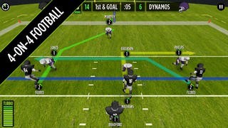 「GameTime Football with Mike Vick」はクォーターバックとなってフットボールをプレイすることができるゲームアプリです。一つのチームは4人のメンバーから構成されており、与えられた時間は60秒です。ボールをラインを割ることができるように運びましょう。鋭いパスを繰り出すことが勝利のカギとなります。