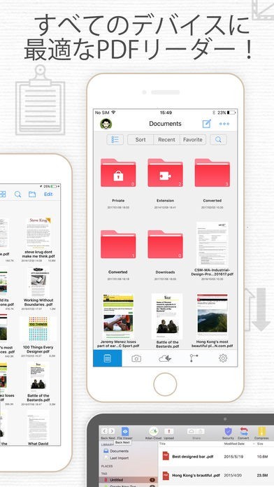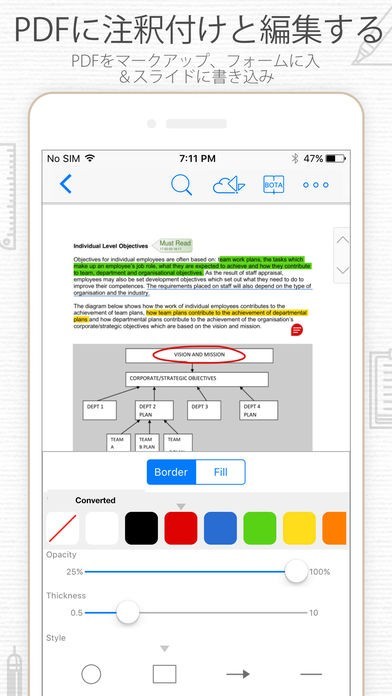 仕事や学業において書類がpdfとして配布されることがあると思います。このアプリでpdfを閲覧することで編集などもできるので、スマホ一台さえあれば隙間時間に仕事や学業ができます。