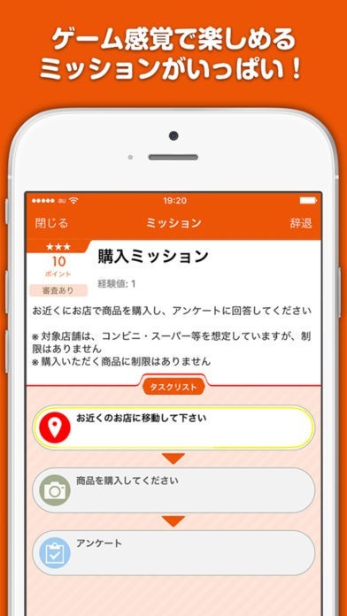 プッシュ通信をオンにしておけば最新ミッションの情報をいち早く手に入れることができます。指定の場所でチェックインするミッションもあるので、外出先の近くでポイントゲットすることも可能です。