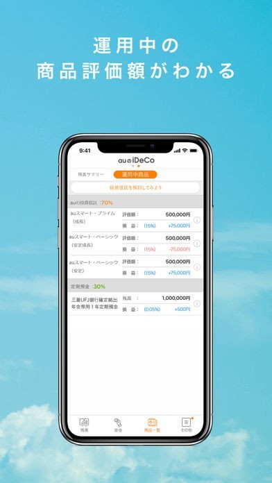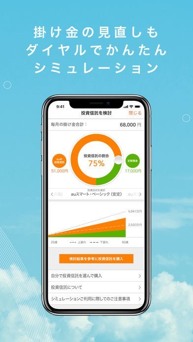 投資経験がない人でもauの「iDeCo/イデコ」個人型確定拠出年金アプリを使う事で個人型確定拠出年金の運用のシミュレーションができて商品選びで失敗せずに済んで良いです。
