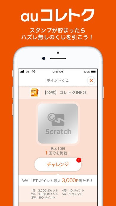 このアプリを使えばauウォレット対象店舗のお得な情報が手に入るだけでなくauウォレットの利用でスタンプが貯まって貯まったポイントを使ってはずれなしのくじを引けるという良さがあります。