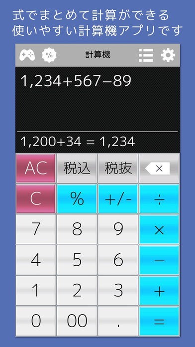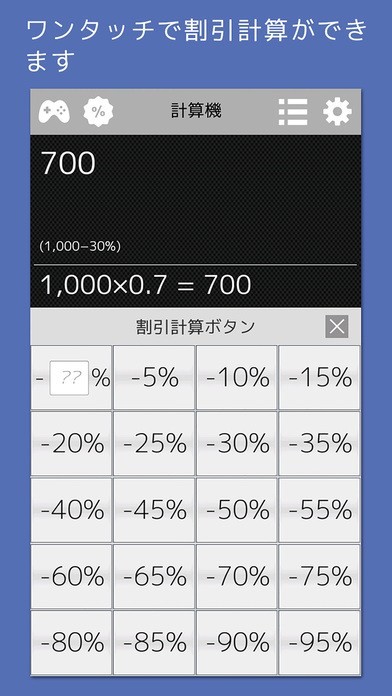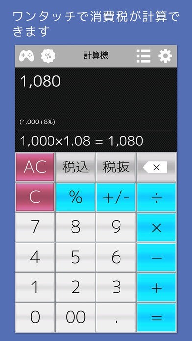 計算機++無料版 ワンタッチで消費税と割引計算ができる電卓のスクリーンショット