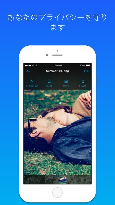 携帯電話上の写真を他人の目から隠さなければならないとき、KeepSafeがあれば簡単です。お持ちのiPhoneの写真アプリから、画像や動画をKeepSafeに移せばいいのです。KeepSafeにインポートした写真は、使い勝手のよい暗証番号パッドの背後に保管されます。これにより、それらの写真が他人の目に触れるのを防ぎます。