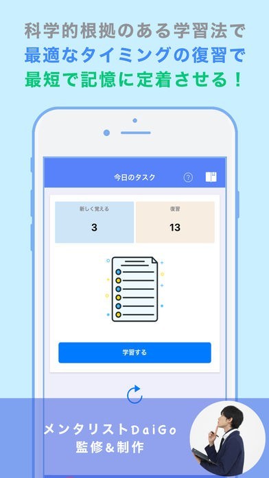 日々の復習範囲を選出し楽に暗記できる