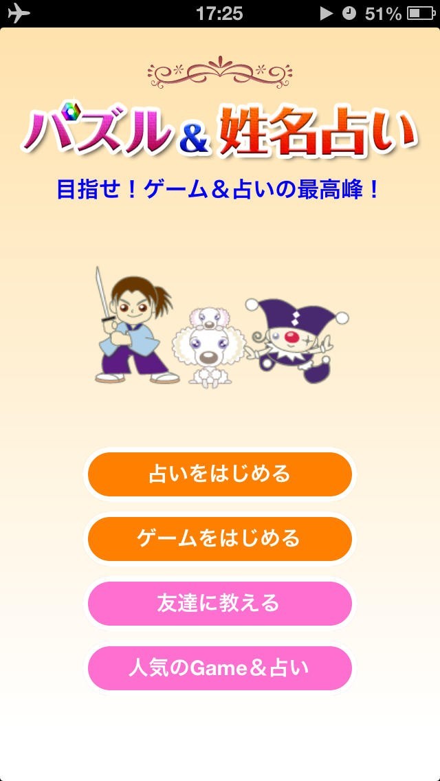 パズルと姓名占いが同時に楽しめる!充実のメニューも嬉しい占い!