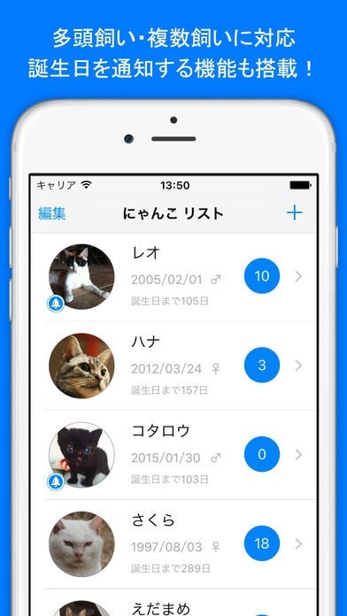 また、誕生日を通知する機能もあり、うっかり愛猫の誕生日を忘れてしまうなんてこともなくなります。
