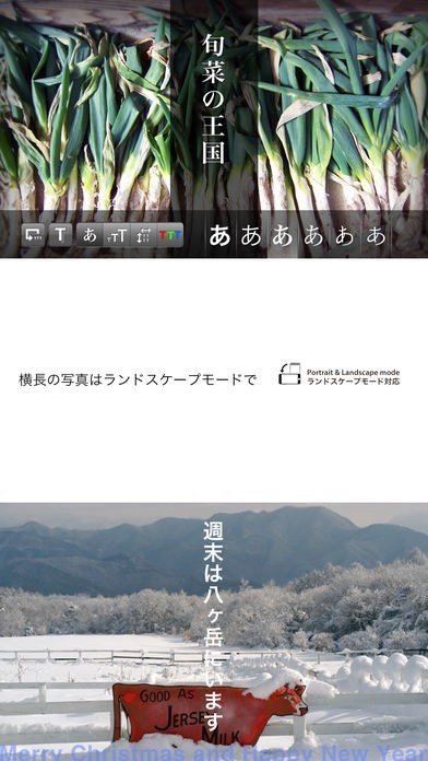 美しい書体が6種類!縦書き文字と横書き文字で、撮ったその場で簡単にレイアウト
