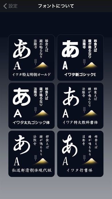 一般的なフォントだけではなく、文学やポスター用のフォントとして使われることが多いイワタ系のフォントなどを利用できます。アプリで画像のデザインをするこだけでフォントの選択幅を広げることができます。