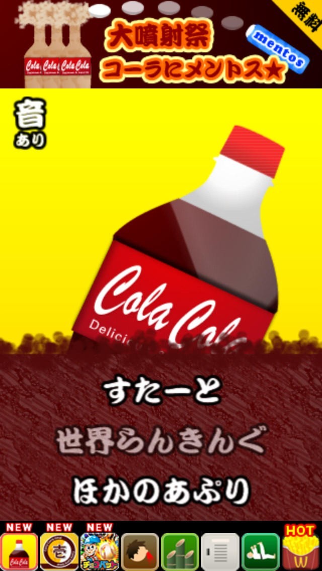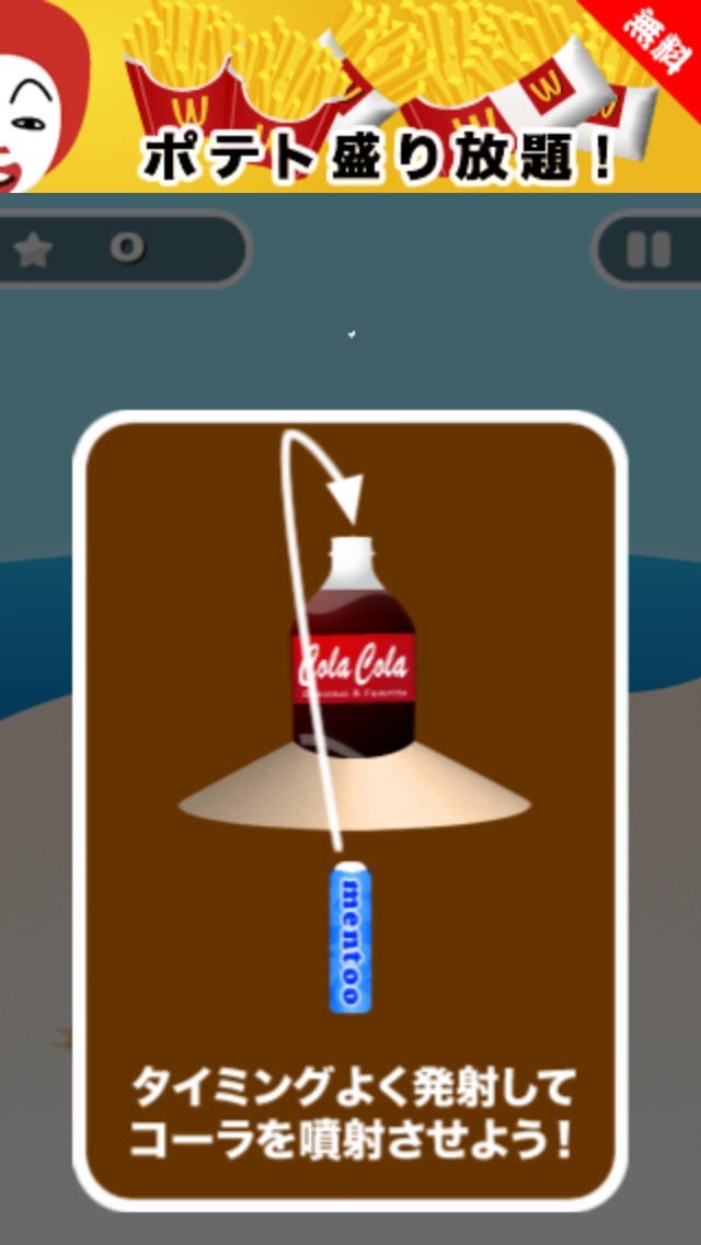 ・画面をタップしてメントスをコーラの瓶に向かって発射しよう!