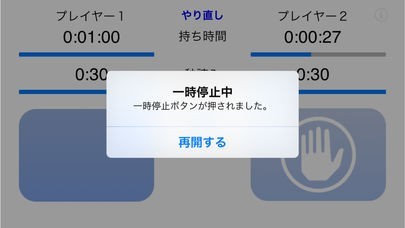 お互いの持ち時間をゲージで表示してくれる機能があるので見た目ですぐ分かります。持ち時間が残り10秒になると音声で秒読みをしてくれます。また一時停止ボタンがあるので急な用事ができても勝負を止めることができます。