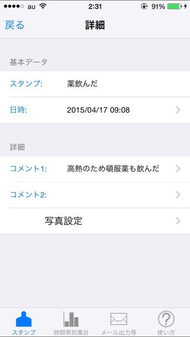 このアプリは日常生活の細かいことをスタンプにして行った時に簡単に記録をすることが出来るアプリです。自分の行動が分かるので物忘れが激しい方なども使用出来るのが利点です。