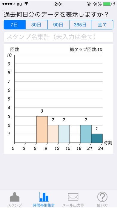 スタンプを自作して、行動を行った時にその時間にスタンプを押すだけで簡単に利用することが出来るアプリです。そうして集まったスタンプは集計することが出来てグラフにまとめてくれるので便利です。