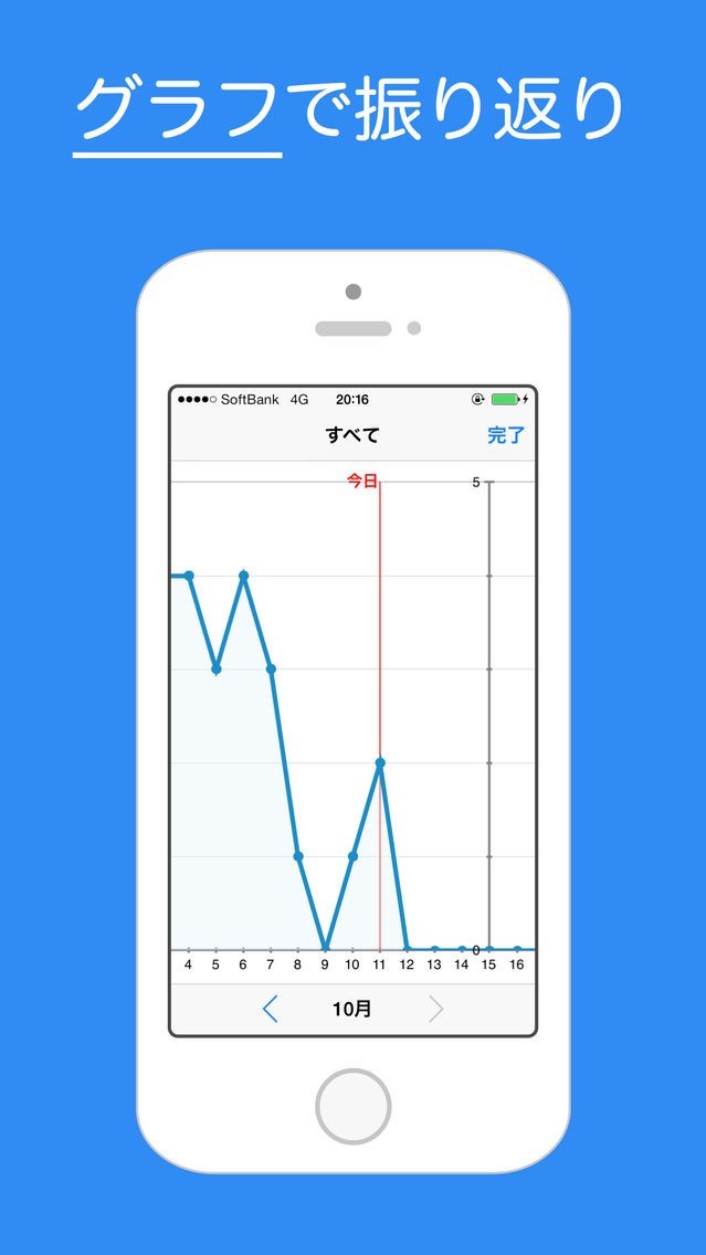 今まで実行したタスクは月別に分けられたわかりやすいグラフに表示され、モチベーション維持に一役買ってくれます。 長い期間頑張ってきた方ほど過去を振り返って自分自身を褒めてあげられます。