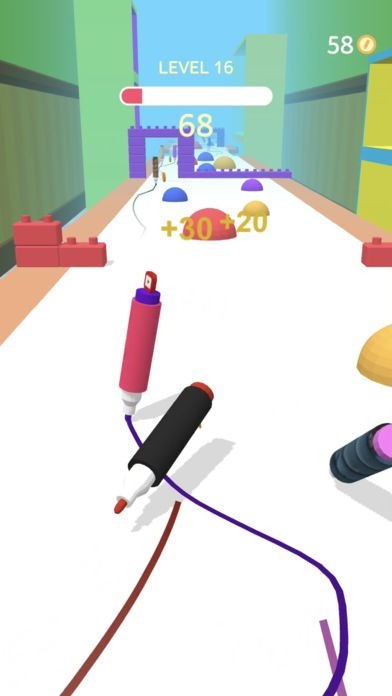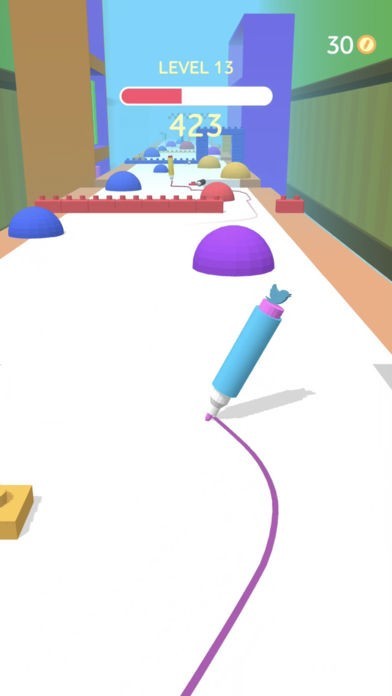 このゲームはペンシルを操作して障害物に当たらないようにしながら進む内容となっています。ペンシルは床に線を引きながら走っていくので自分が進んだ場所がいつも記録されています。