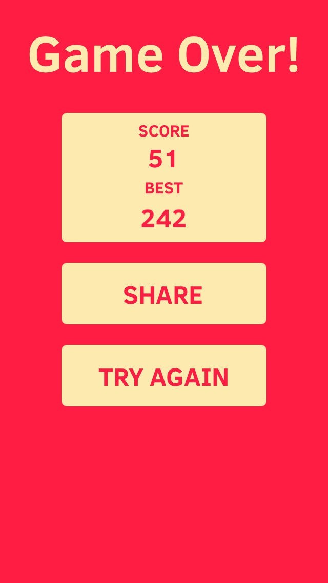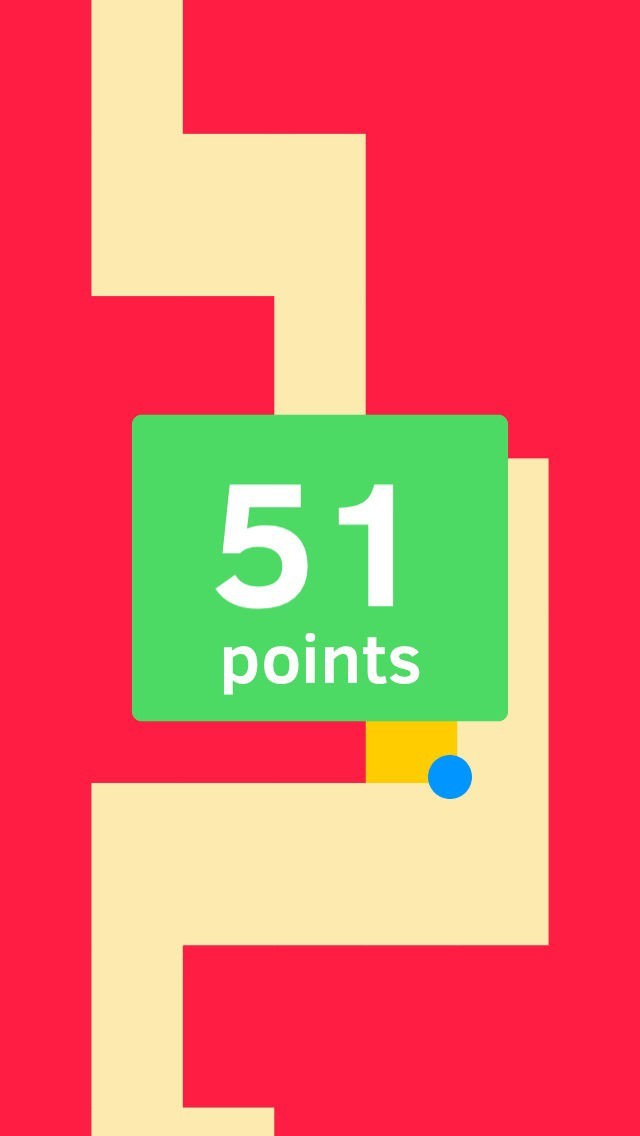 時間をかけることもできいかに細い色の範囲から飛び出ないようにするかで得点が上下します。タップを精密にして指先と同期する丸を正確に動作させることで大きいスコアになります。