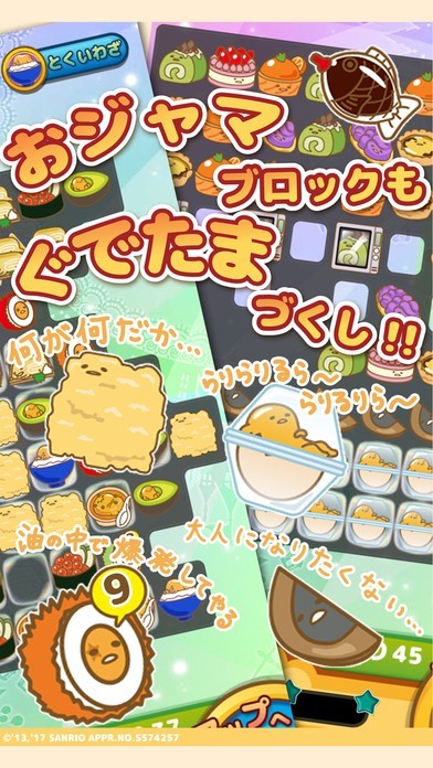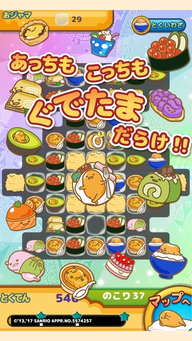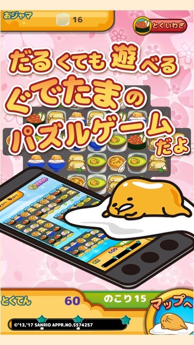 ぐでたまがテーマになったパズルアプリで色んな食べ物になったぐでたま達をスワイプして絵柄を揃えるというシンプルなゲームですがほんわかした雰囲気のぐでたま達を見ながらプレイできて気持ちが落ち着きます。