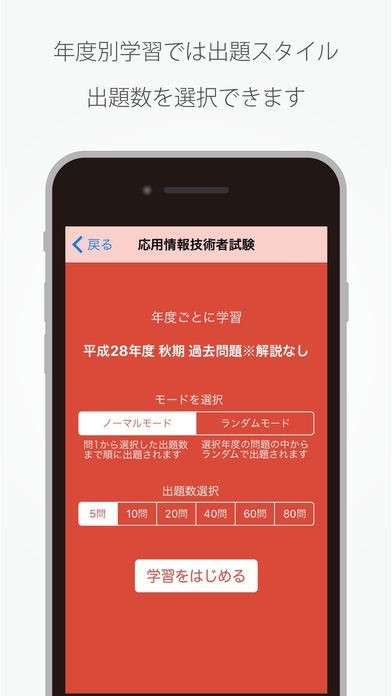 ・学習時に過去問題数を選択できます。