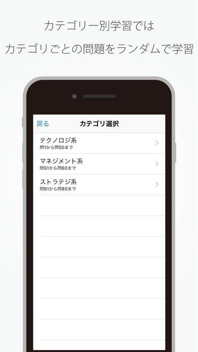 ・年度ごと、カテゴリ別および苦手問題の学習ができます。
