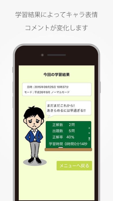 ・間違えた問題は苦手問題として記録され、繰り返し学習できます。