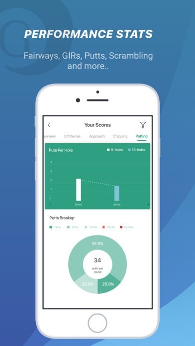 Record just Hole-scores, or add Fairway Hits, GIRs and Putts with Golf's most elegantly designed User Interface. Spend minimal time looking at your phone, and maximum time playing Golf!