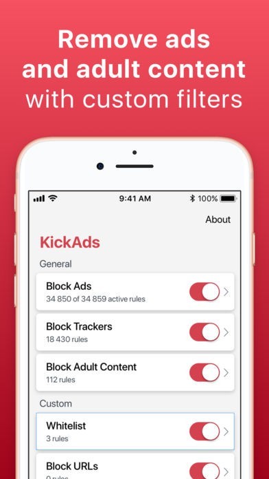 App Storeより引用最も高度なadblockが最終的に利用可能です。KickAds - あなたが必要とする唯一の広告ブロッカーです!