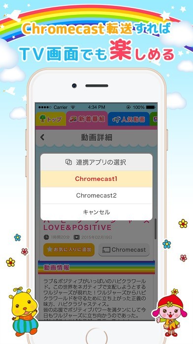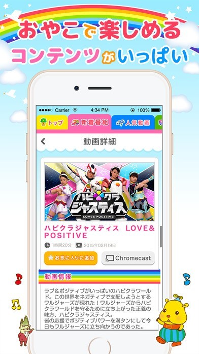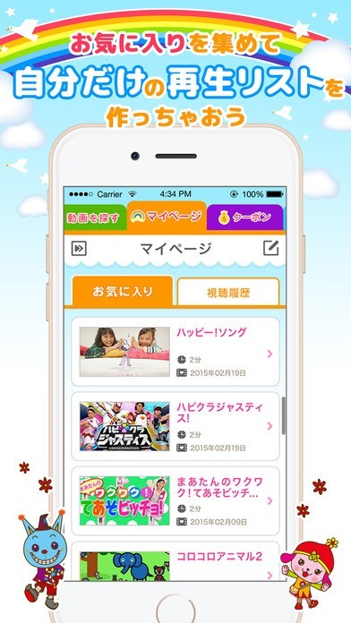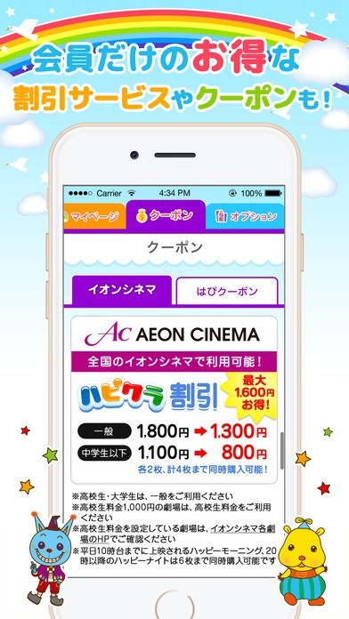 「子育て応援 ハピクラ」を使うことによって、子供向けの番組を見ることができるようにしてくれます。例えば「新着番組」で新しい作品の紹介と詳細な説明を見ることが出来ます。 また、左にある「お気に入りに登録」によって番組開始時に知らせてくれたり後で見たりすることができますし、右側にある「Chromecast」をタップすれば、環境が整っているのならばテレビで視聴することも可能になります。 また、クーポンでは、イオンシネマの利用価格を割引してくれるような様々なお得な特典があるのでご覧になってみるのもいいでしょう。