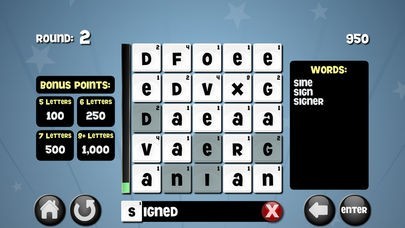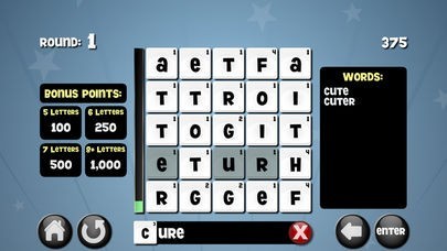 It’s a race against the clock to create as many words as possible with the given letters - tap away at the letter tiles to create any word 3 - 12 letters in length. You are given the first letter to start. Once the time expires, the round ends and new letter tiles will appear & you will get a new starting letter to work with.