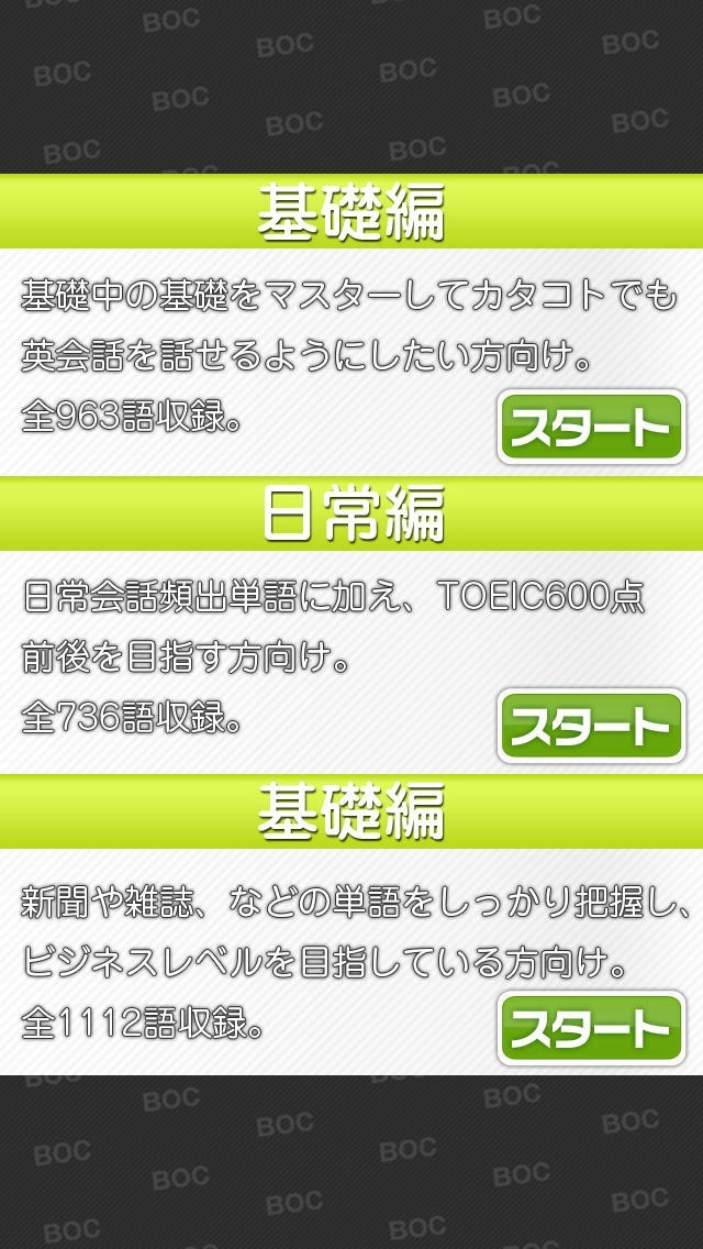 英語に足を突っ込むのに躊躇している方は『基礎』から、英語に自信をつけたい人は『日常』から、英語を本格的につかっていきたい人は『ビジネス』より始めてみてください。