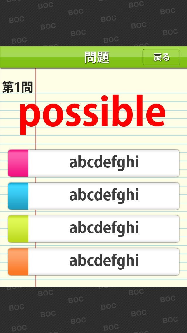 これを叶えてくれるのが、当アプリの4択クイズ式の単語学習です。