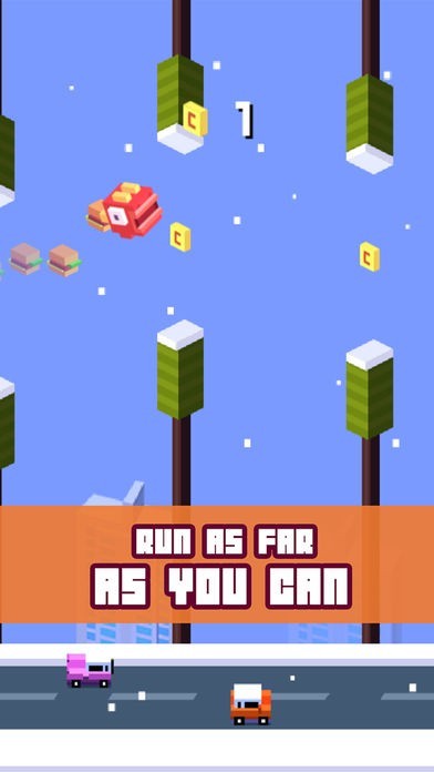 かわいい鳥のキャラクターを、障害物をよけながらより遠くまで進めさせるゲームです。スコアが伸びれば伸びるほど、その先に行きたくなる、中毒性のあるゲームが楽しめます。
