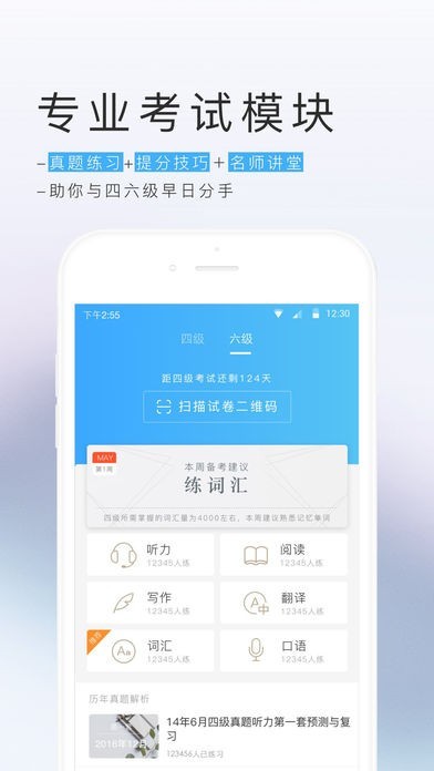 考试——快速提升四级、六级、托福、雅思、GRE词汇量,课程,考试真题练习。