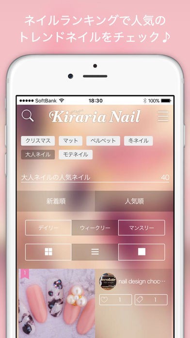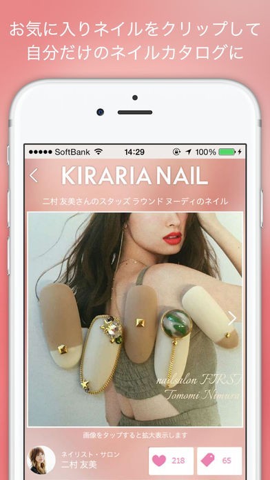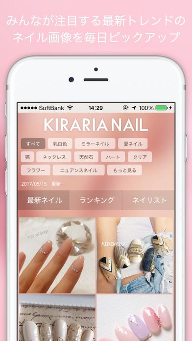 「2016最新ネイルデザインカタログ - キラリアネイル」は、カラーやトレンドなど条件を絞り込んでネイルデザインを検索できるアプリです。フリーワード検索もできるので、キーワードを入力してもいいでしょう。他にもお気に入りのデザインが見つかるとブックマークしておくことで、自分だけのオリジナルリストを作ることができます。また自分のネイルデザインを投稿できる機能もあるので、みんなとシェアしてもいいでしょう。最新のネイルニュースも随時受け取れるので、流行を知りたい時にぴったりです。