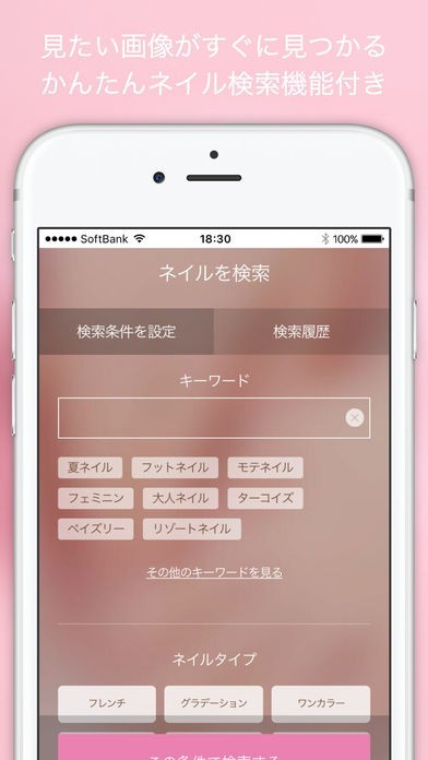 最新のトレンドネイルがはやわかり!豊富なカテゴリ+フリーワード検索で検索の時間を取らせない