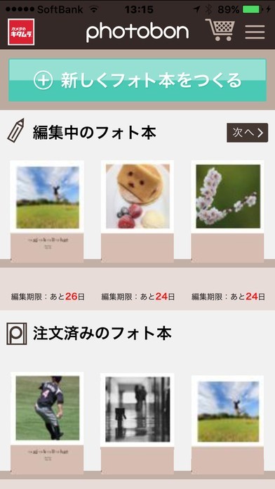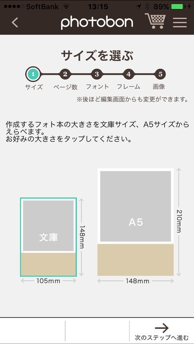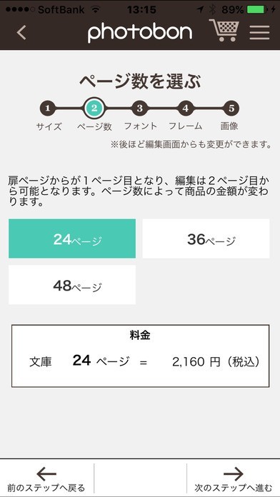 作りたいフォトブックのページ数やサイズ金額から編集機能を選択できます。