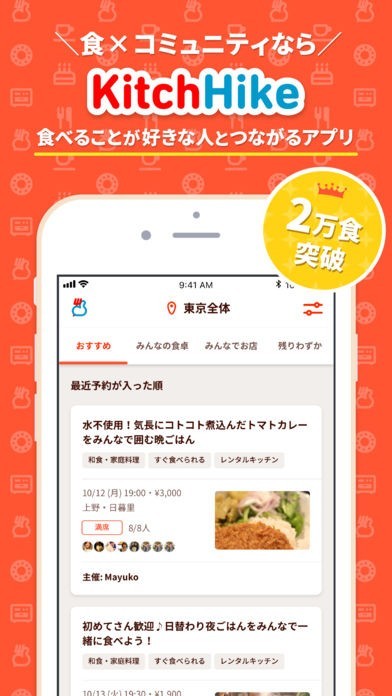 キッチハイク - みんなで食べる「みん食」アプリのスクリーンショット