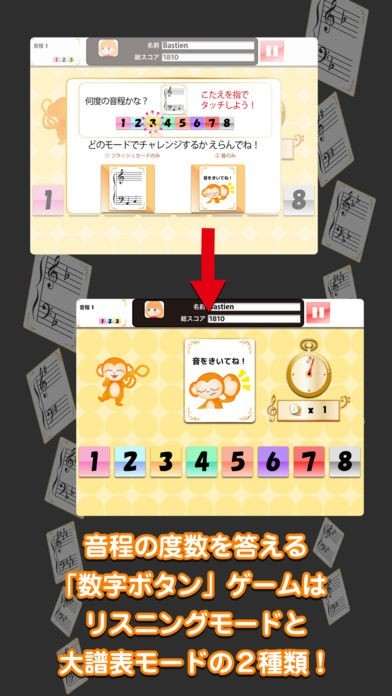 数字ボタンを使っていろいろなモードの音程練習が可能
