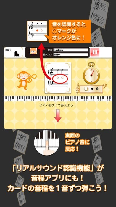 問題に合わせてピアノを弾いて答えることができる