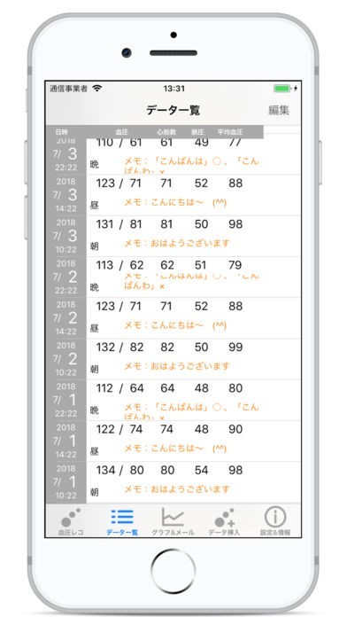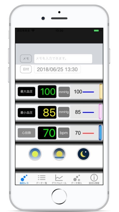 高血圧はあらゆる生活習慣病の指針になります。毎日、血圧をつけて管理することで塩分過多などに注意できるようになり生活習慣が整います。このアプリでは、朝昼夜と血圧脈拍を管理して生活習慣の改善をサポートしてくれます。