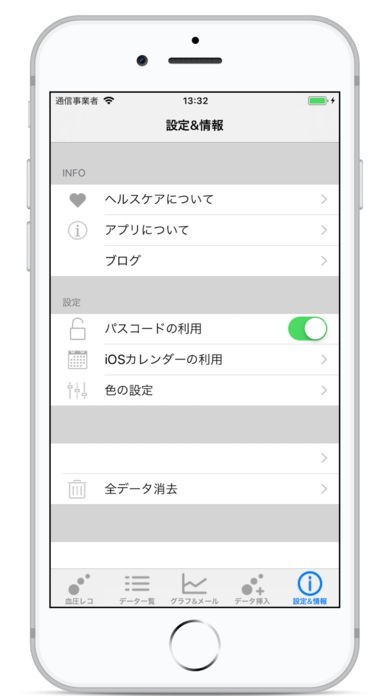 血圧脈拍の変化を毎日朝昼夜と記録することで、生活習慣病を予防し正しい生活習慣へと導いてくれます。また、メールへの出力も可能なため健康相談への利用や医師への相談など医学的なアドバイスや処方にも役立ちます。