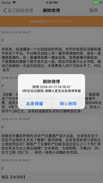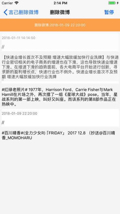 App Storeより引用言己删除微博是一个简单的微博清理工具,方便微博用户一键清理微博,节省用户原本需要一次次点击鼠标操作才能删除微博的时间。