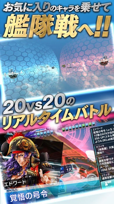 最大で20対20のプレイヤー同士によるリアルタイム艦隊アクションを楽しむことができるようになっていて、スキルが発動することによってド派手なエフェクトが発生します。