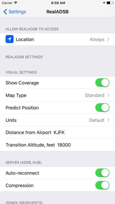 * Push notifications for special squawks 7500/7600/7700